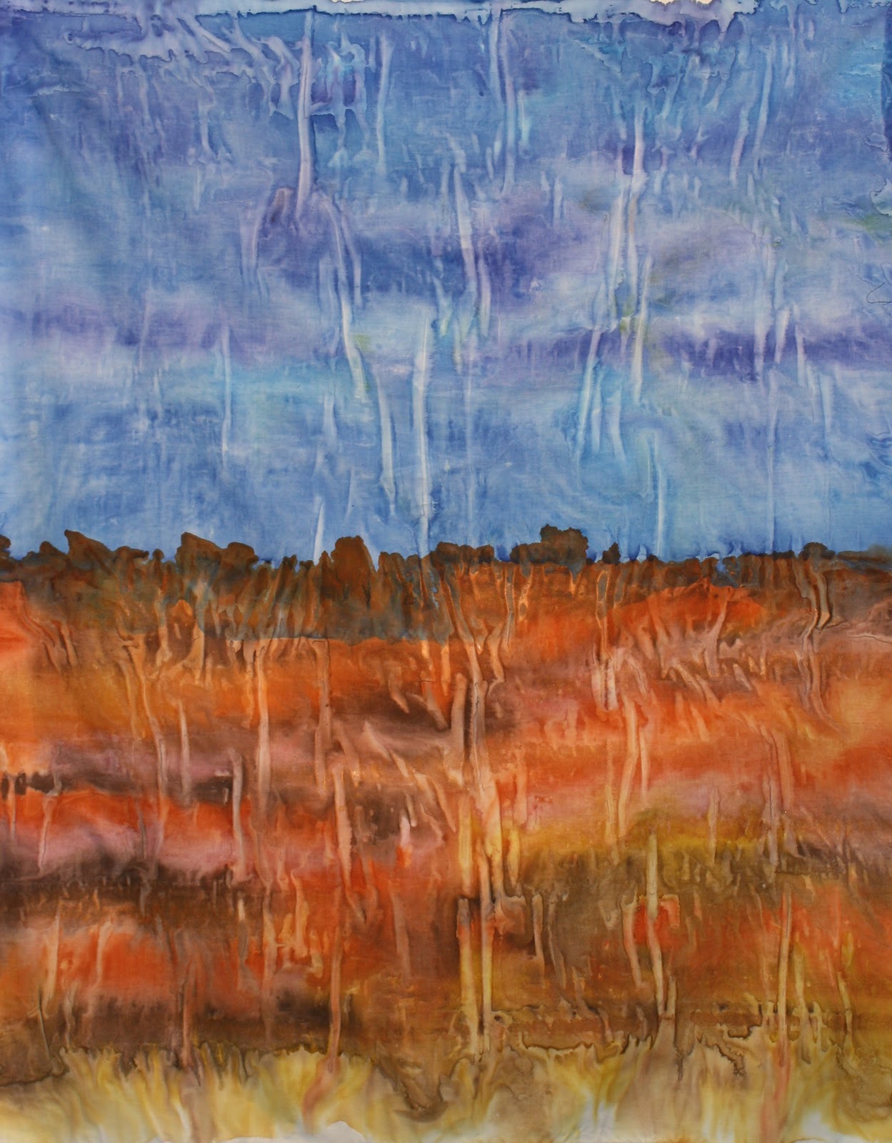 Soooooo . . . I have decided to work instead with the printed surface on whole cloth quilts for a while and see how that goes. As a starting point, I am returning to this painted whole cloth piece that I started working on last year and set aside.